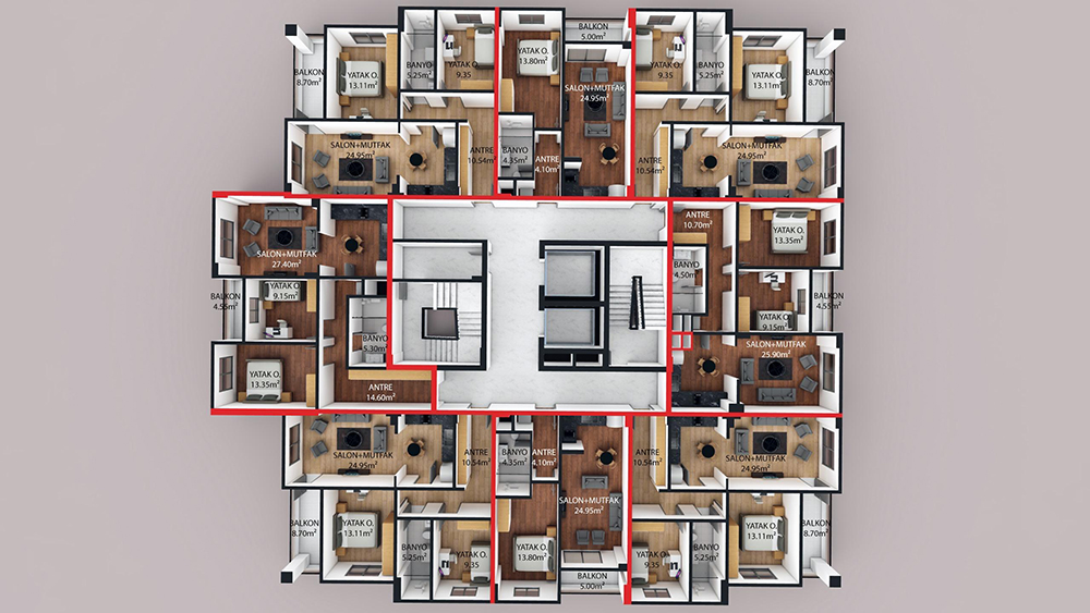 Şehrin kalabalığından uzak, doğayla iç içe konforlu bir yaşam sunan Panorama Evleri, modern mimarisi ve geniş yaşam alanlarıyla yeni bir yaşam tarzı vadediyor. Ferah daire planları, yüksek tavanlı yapısı ve gün boyu güneş alan pencereleri sayesinde her anınızı aydınlık ve huzurlu bir ortamda geçirmenizi sağlar.